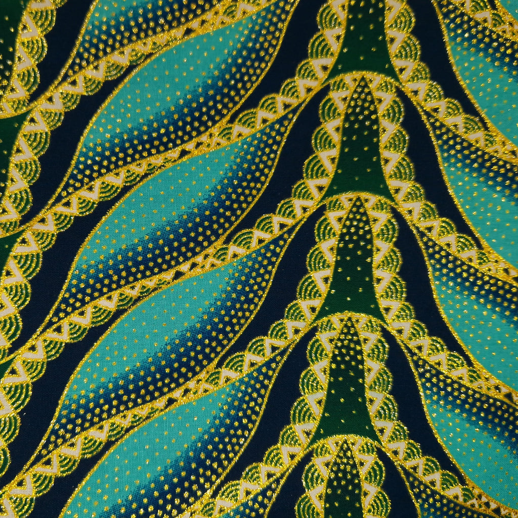 African print fabric - Exclusive Embellished Glitter effects 100% cotton - GL-4020 Light blue / Turquoise Gold