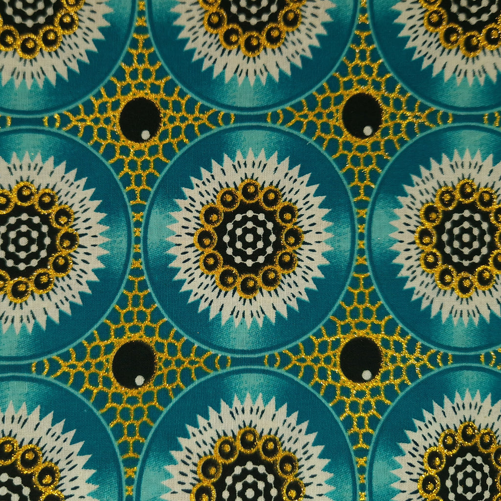 African print fabric - Exclusive Embellished Glitter effects 100% cotton - GL-4032 Turquoise Gold
