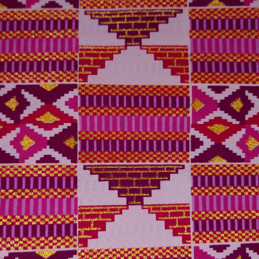 African print fabric - Exclusive Embellished Glitter effects 100% cotton - GL-4028 Pink Gold Kente