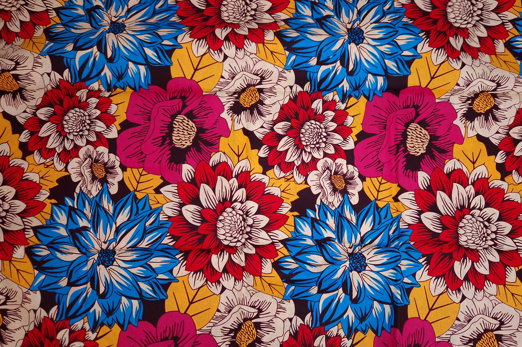 African print fabric - Red & Blue Flowers - 100% cotton