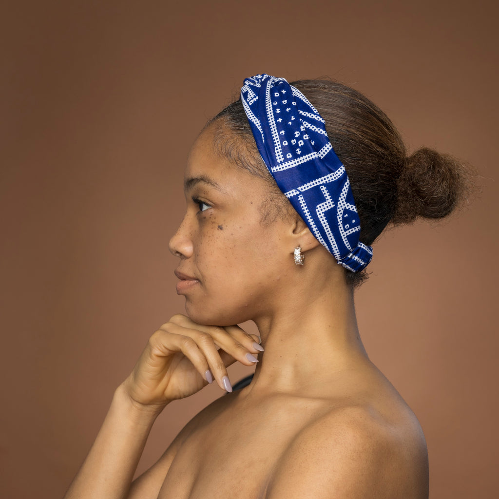 African print Headband - Adults - Hair Accessories - Blue White Ndop Cameroon