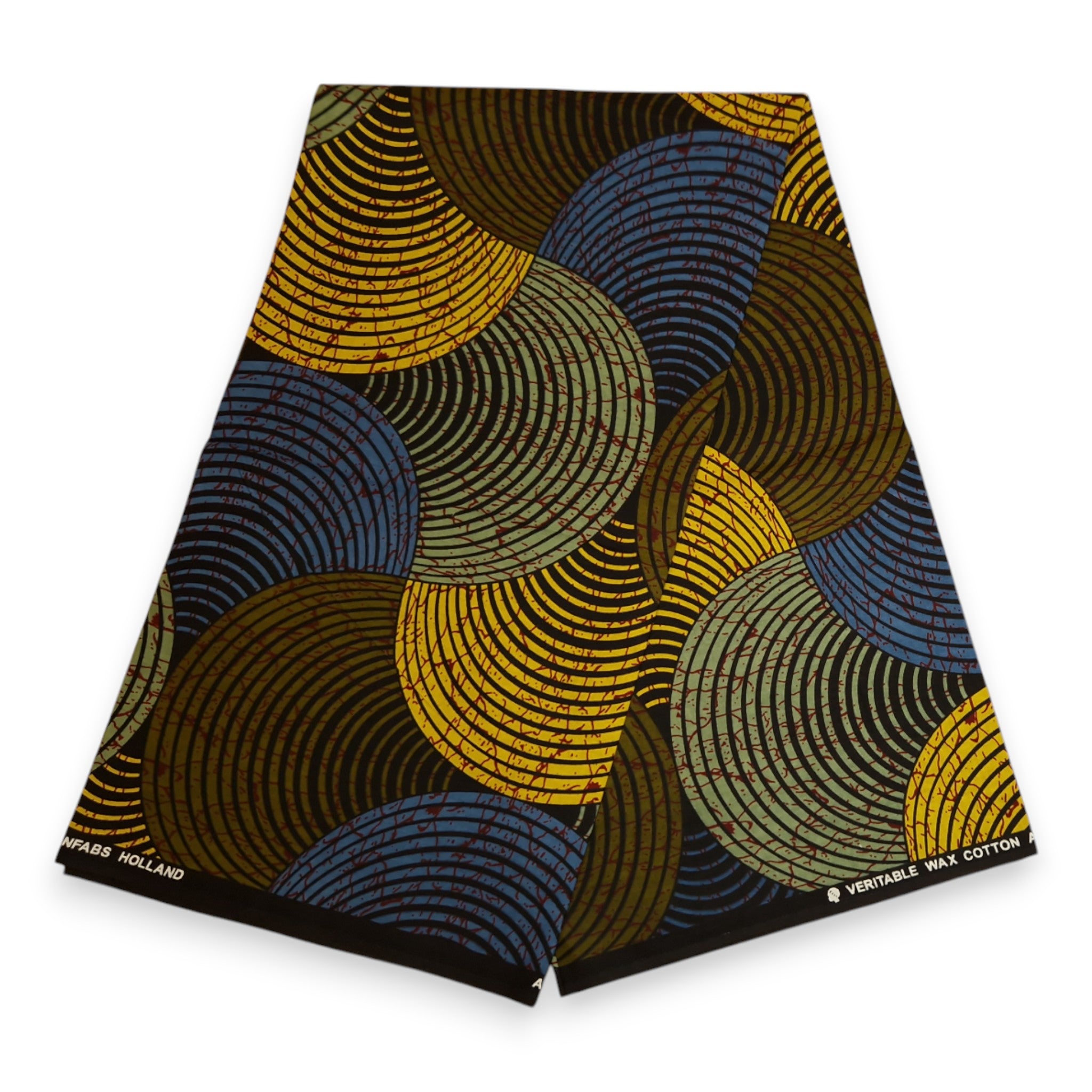 African print fabric - Green, Blue & Yellow Concentric Circle Design - 100% cotton