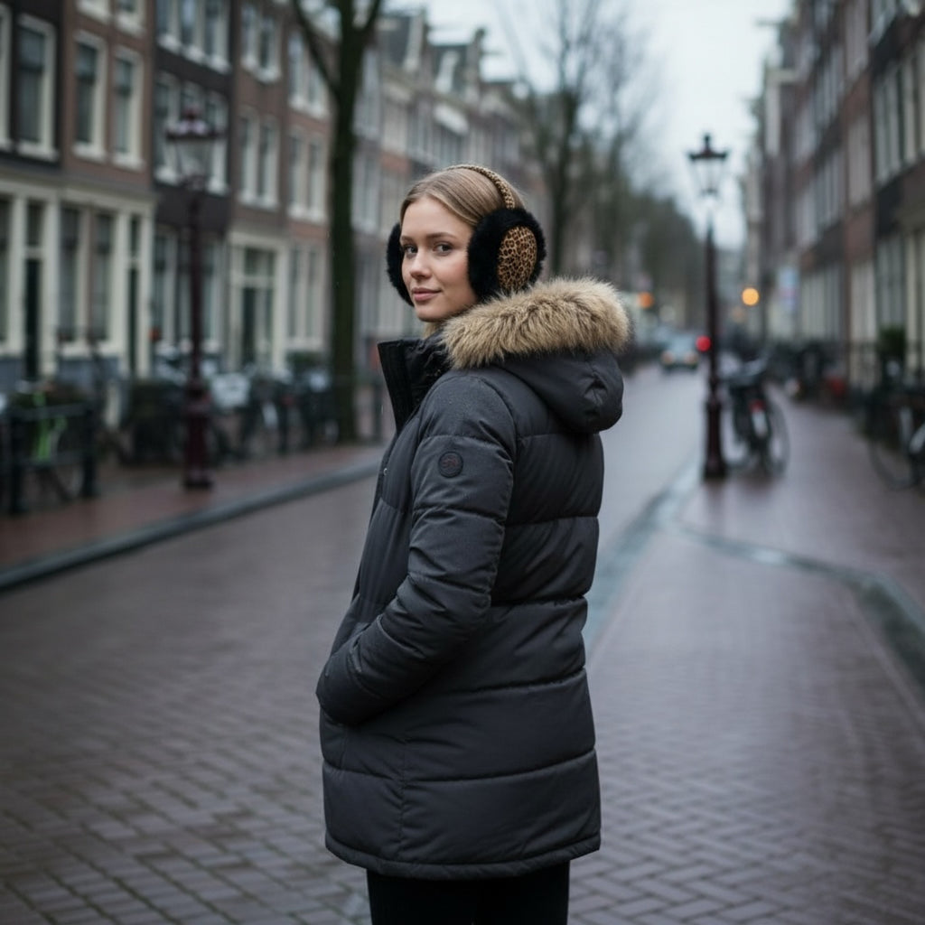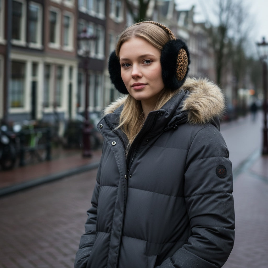 African Print Earmuffs - Foldable Winter Ear Warmers - Leopard
