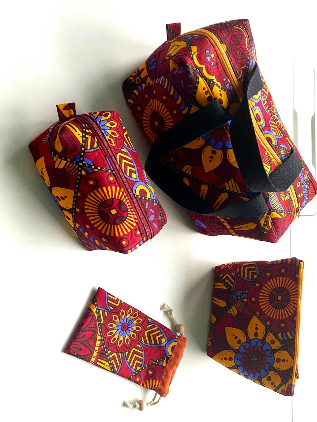 African print fabric - Red & Yellow Mandala Patchwork - 100% cotton