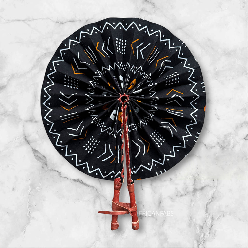 African Hand fan - Ankara print Hand fan - Kwaku - Black