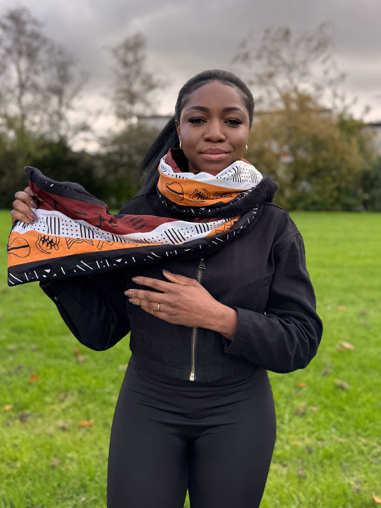 African print Winter scarf Unisex - Slim model - Brown Bogolan Symbols